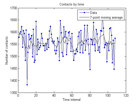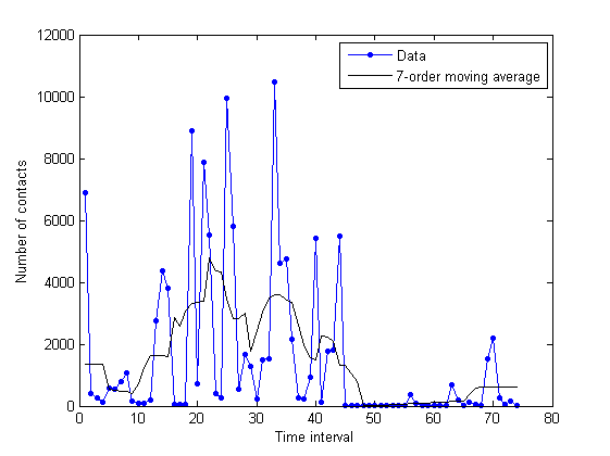 The x-axis indicates the time interval, and the y-axis denotes the number of contacts. A simple moving average technique was used to smooth the data. unimi/pmtr: unimi/pmtr simulation: upmc/rollernet: upmc/rollernet simulation: st_andrews/sassy: st_andrews/sassy simulation: upmc/content: upmc/content simulation: |